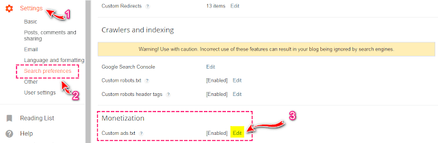 Rules 1: Firstly, Login your Blogger Dashboard and go to settings. Then search preferences, Click on Edit beside custom ads.txt under Monetization option. Follow the image below: