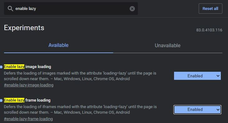 Flag: #enable-lazy-image-loading and #enable-lazy-frame-loading